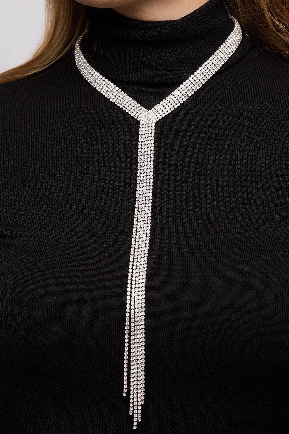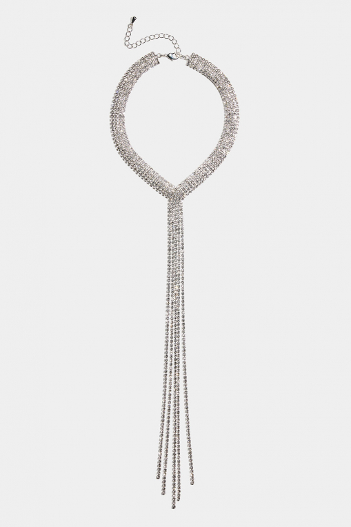 Bred similistenshalskæde i lariat-stil med hængende led.