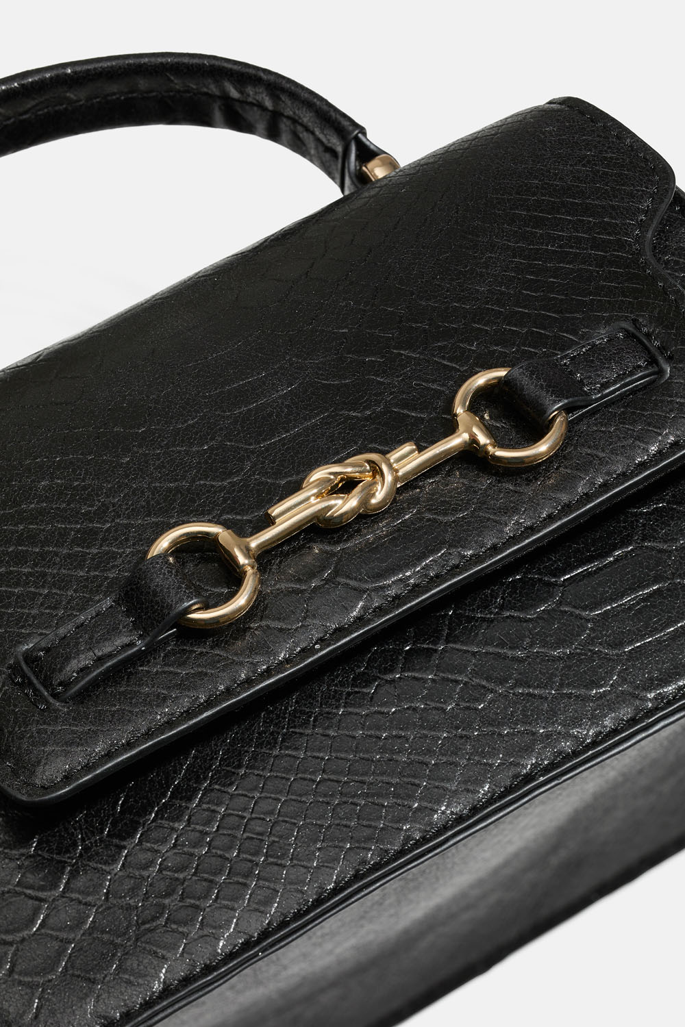 Lille taske i sort slangeskind og metalknapper