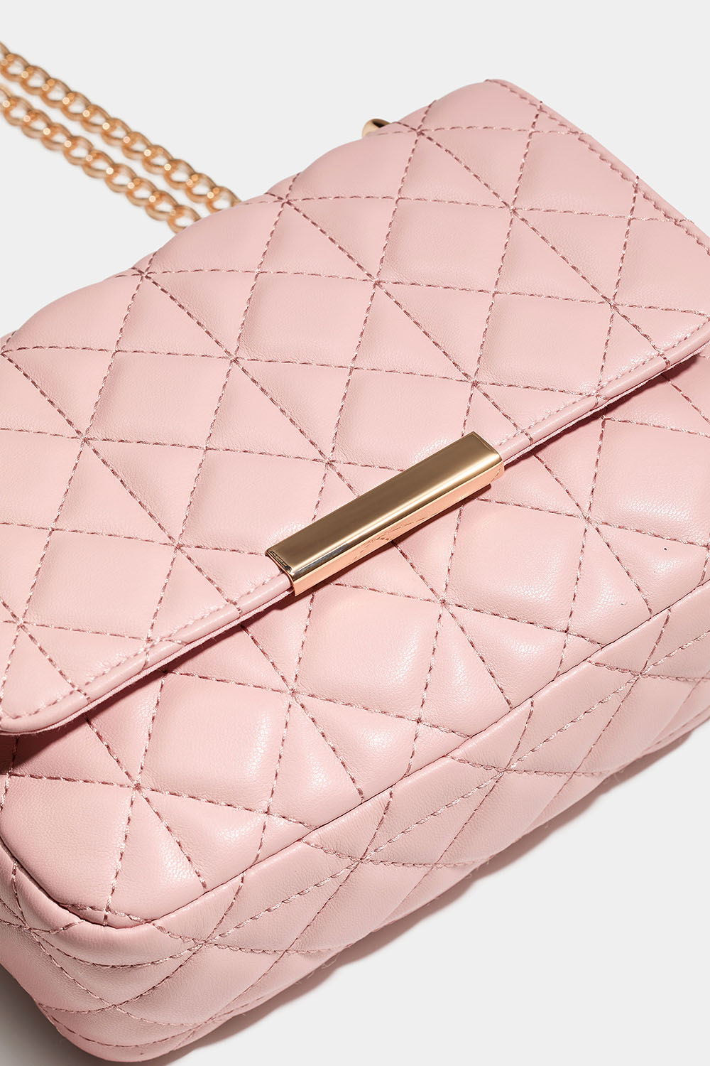Lyserød taske med quiltet design og guldfarvet skulderrem i gruppen Tasker / Skuldertasker hos Glitter (172002015000)