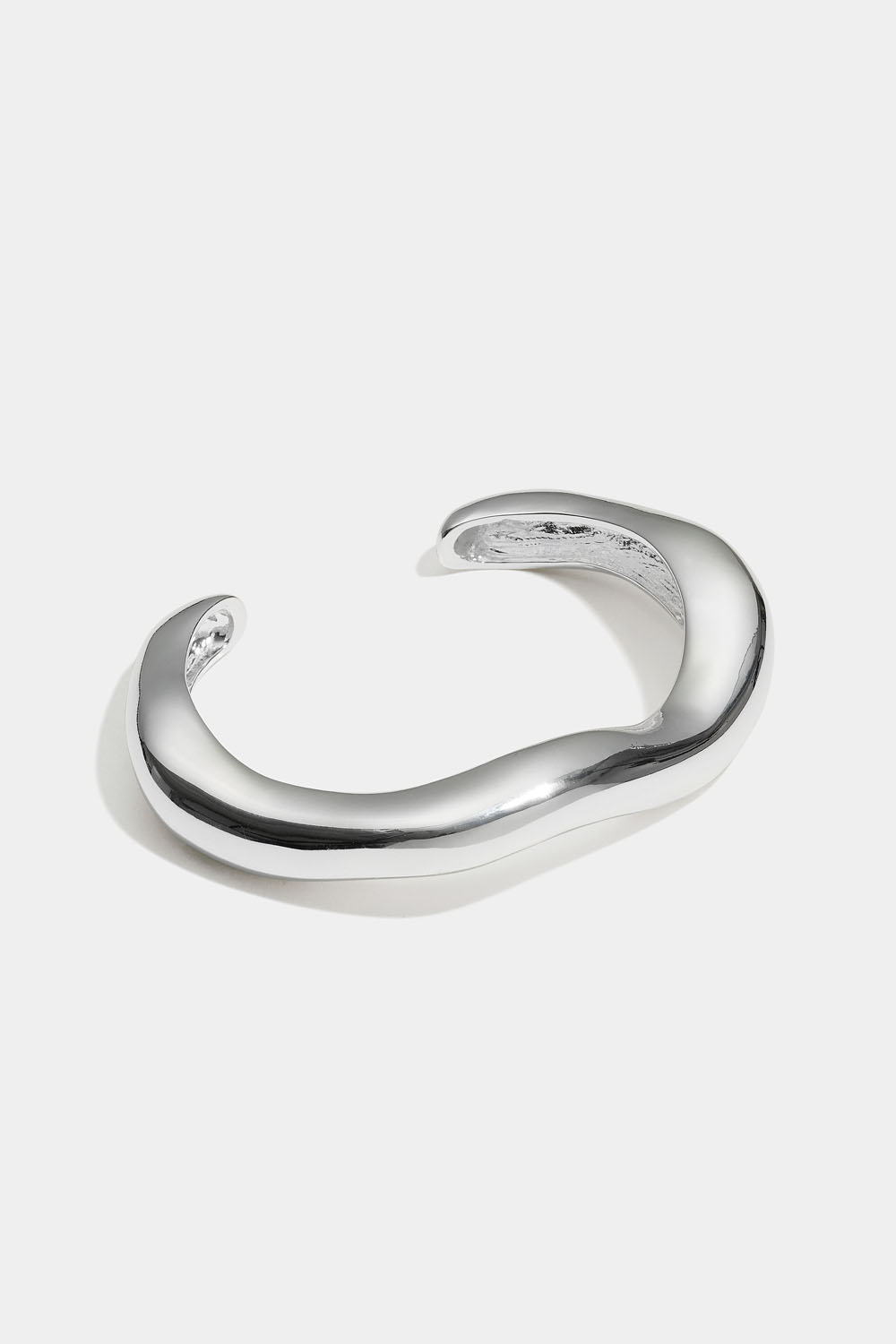 Sølvfarvet manchetarmbånd i en afrundet organisk form med en blank finish.