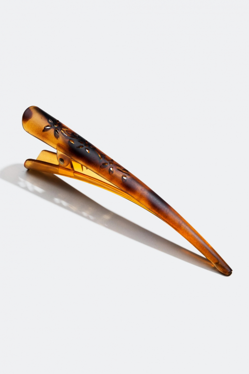 Mat hårnæb - Perfekt til at sætte hele eller halvdelen af håret op med. Overfladen af næbbet er mat og er dekoreret med et hulmønster foroven. Næbbet har et design, der følger formen på hovedet, og har tænder på indersiden, der gør håret sidder rigtig godt.