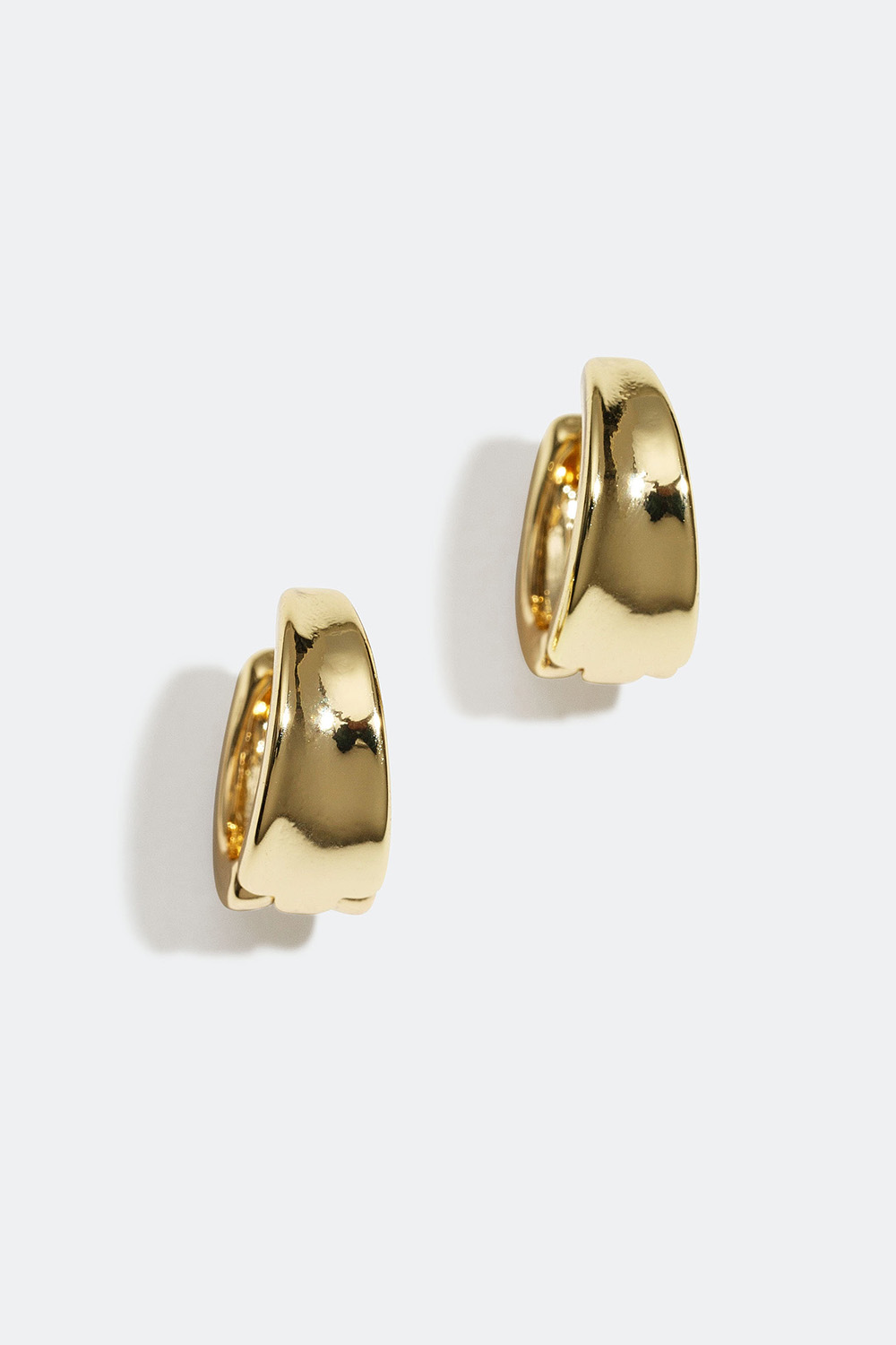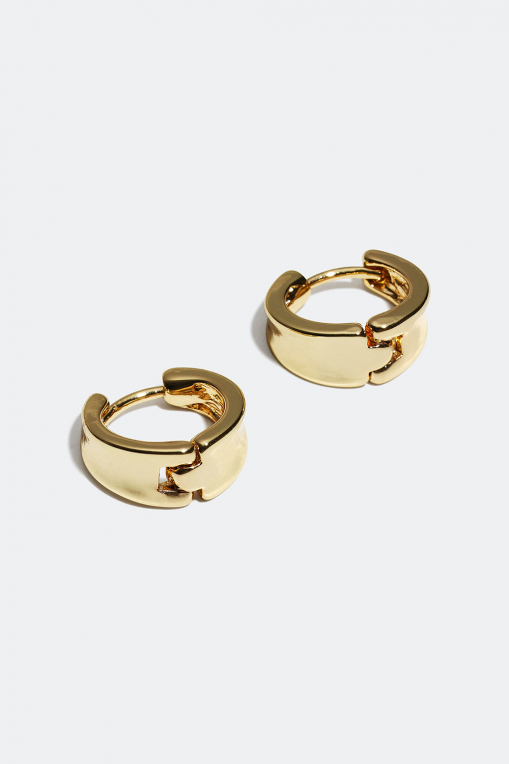 Mini-hoops med blank overflade og let konkavt design. Øreringene har lige kanter og et design, der er bredere nedadtil og smallere for- og bagtil. Et par stilrene hoops med et minimalistisk design, som med garanti bliver en favorit i smykkegarderoben.