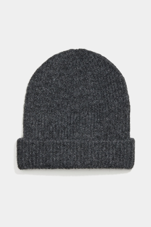 Mørkegrå, ribstrikket hue