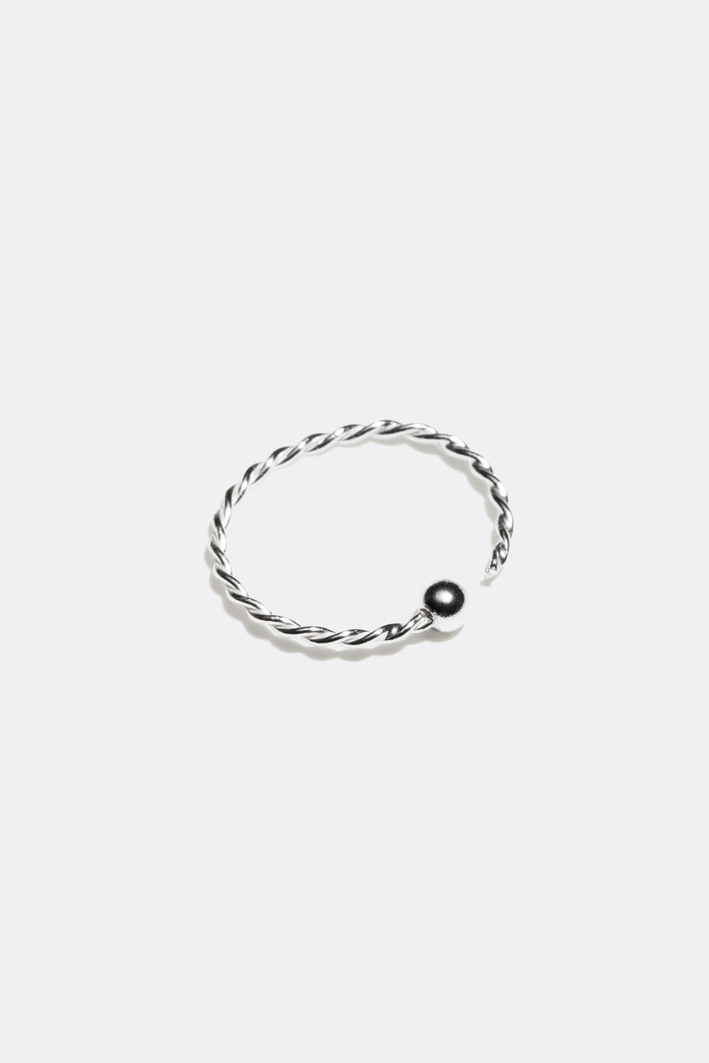 Næsepiercing i ægte sølv, snoet ring - En næsering i ægte sølv med snoet form, og en metalkugle som bruges til lås.