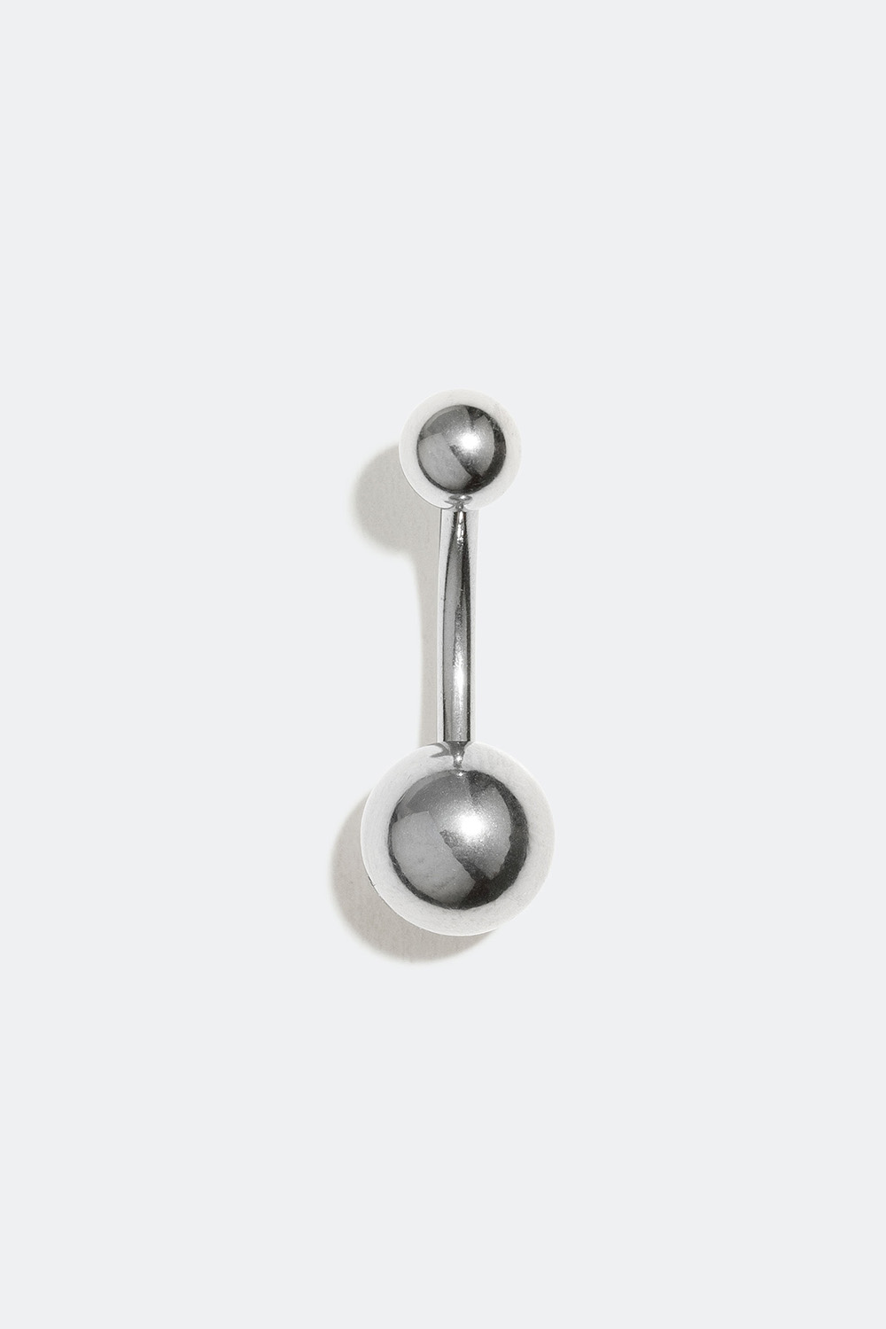Klassisk navlepiercing i kirurgisk stål med glatte kugler. Piercingen er uden vedhæng, hvilket mindsker risikoen for, at den hænger fast i tøjet. Et perfekt hverdagssmykke til navlen i et stilrent design til at bruge hver dag.