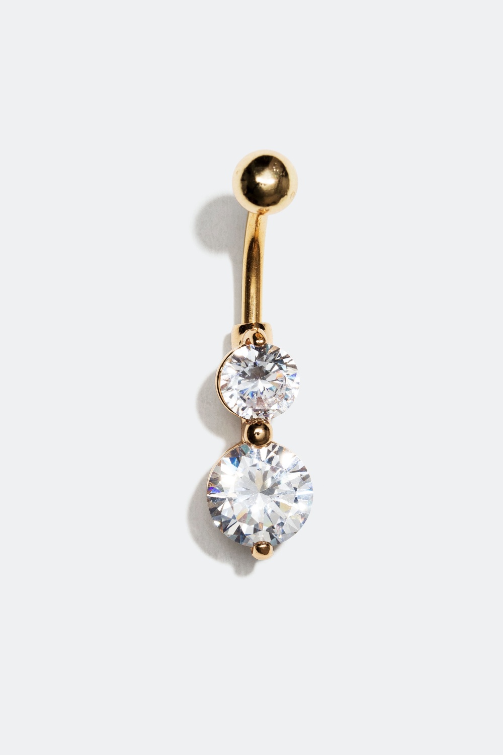 Navlepiercing med to skinnende glassten i gruppen Smykker / Piercinger / Navlepiercinger hos Glitter (325684)