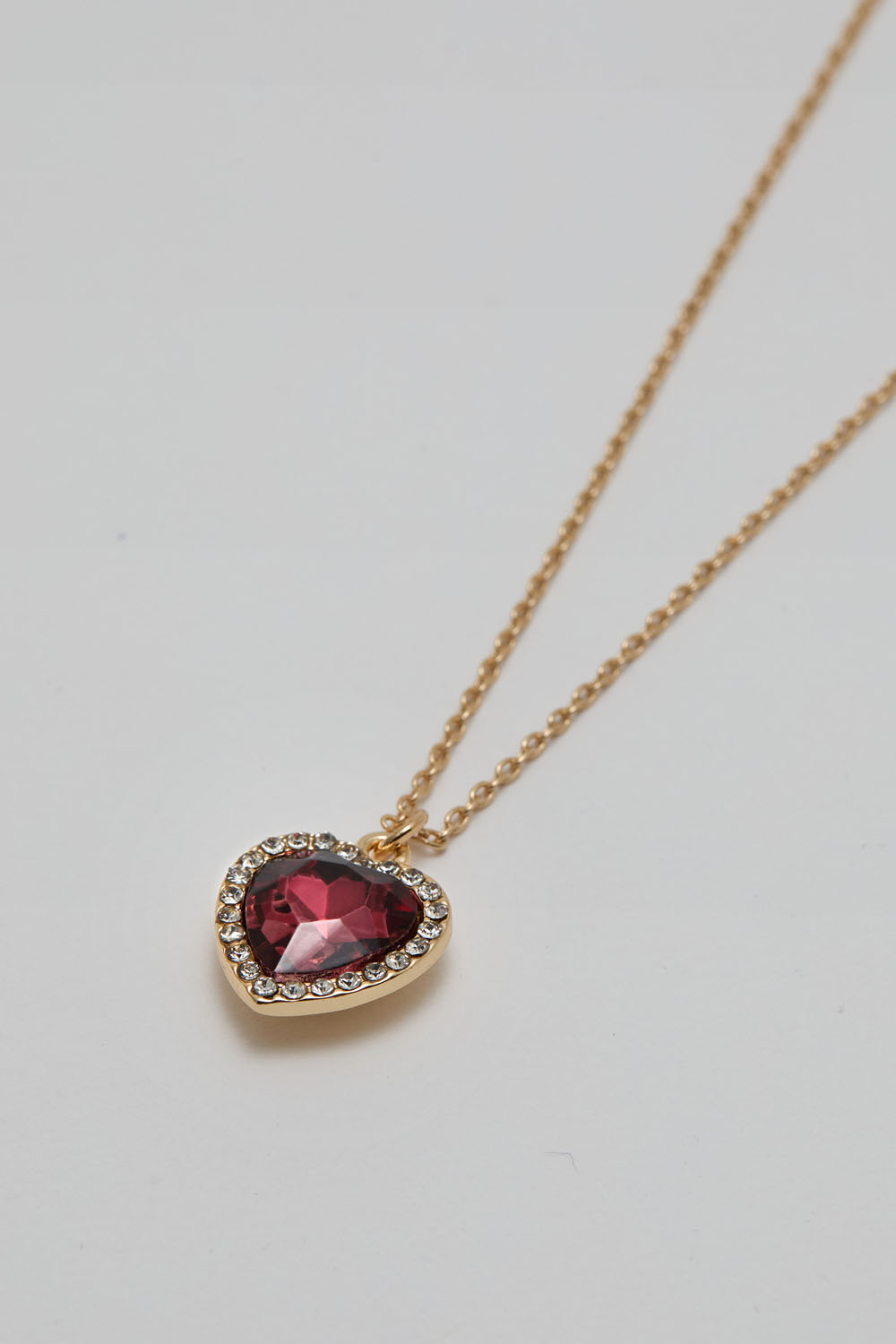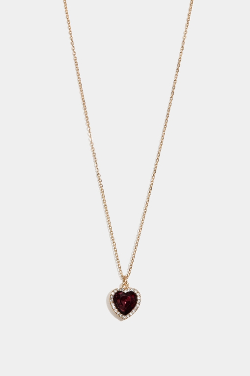 Halskæde med bordeauxfarvet hjerteformet glassten