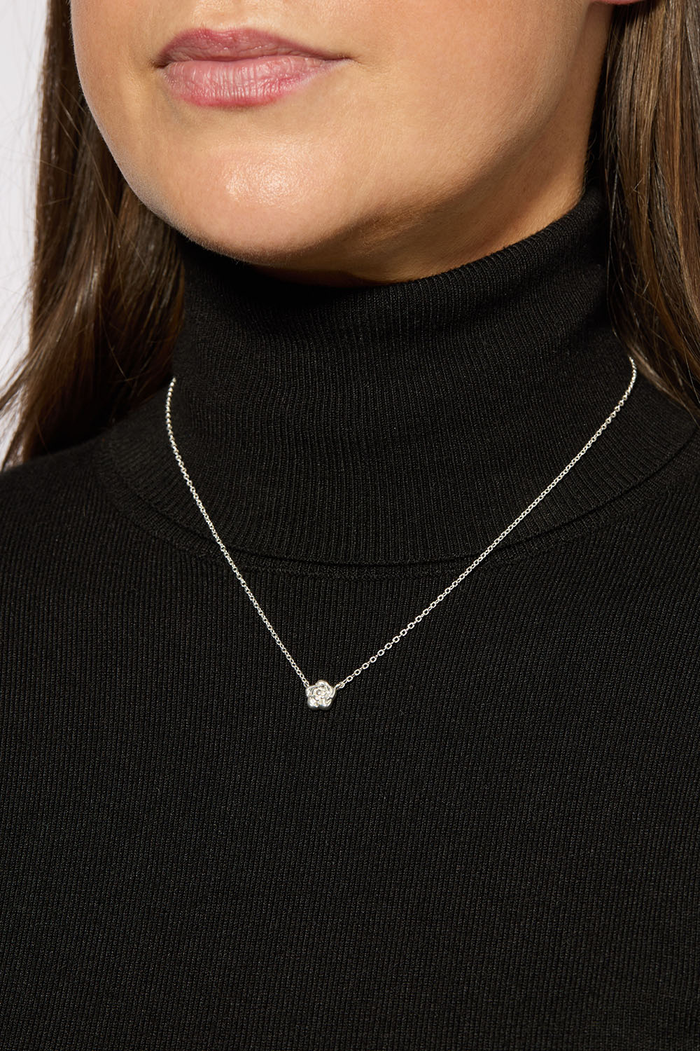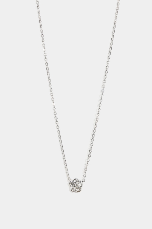 Tynd sølvfarvet metalhalskæde med lille rose.