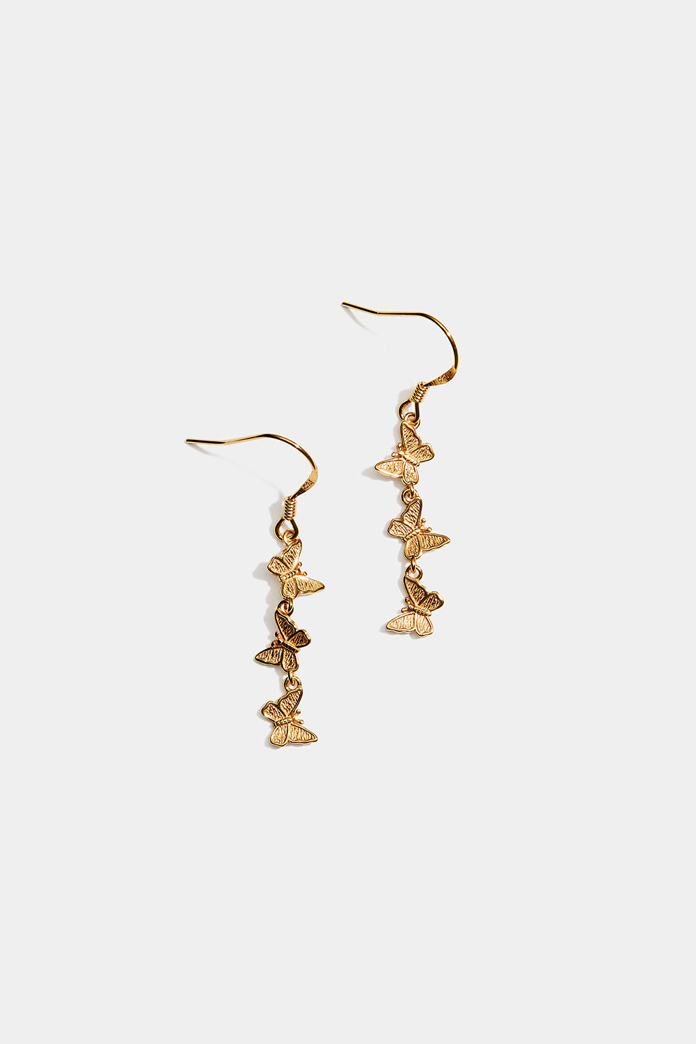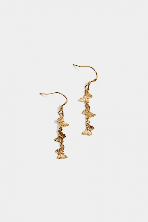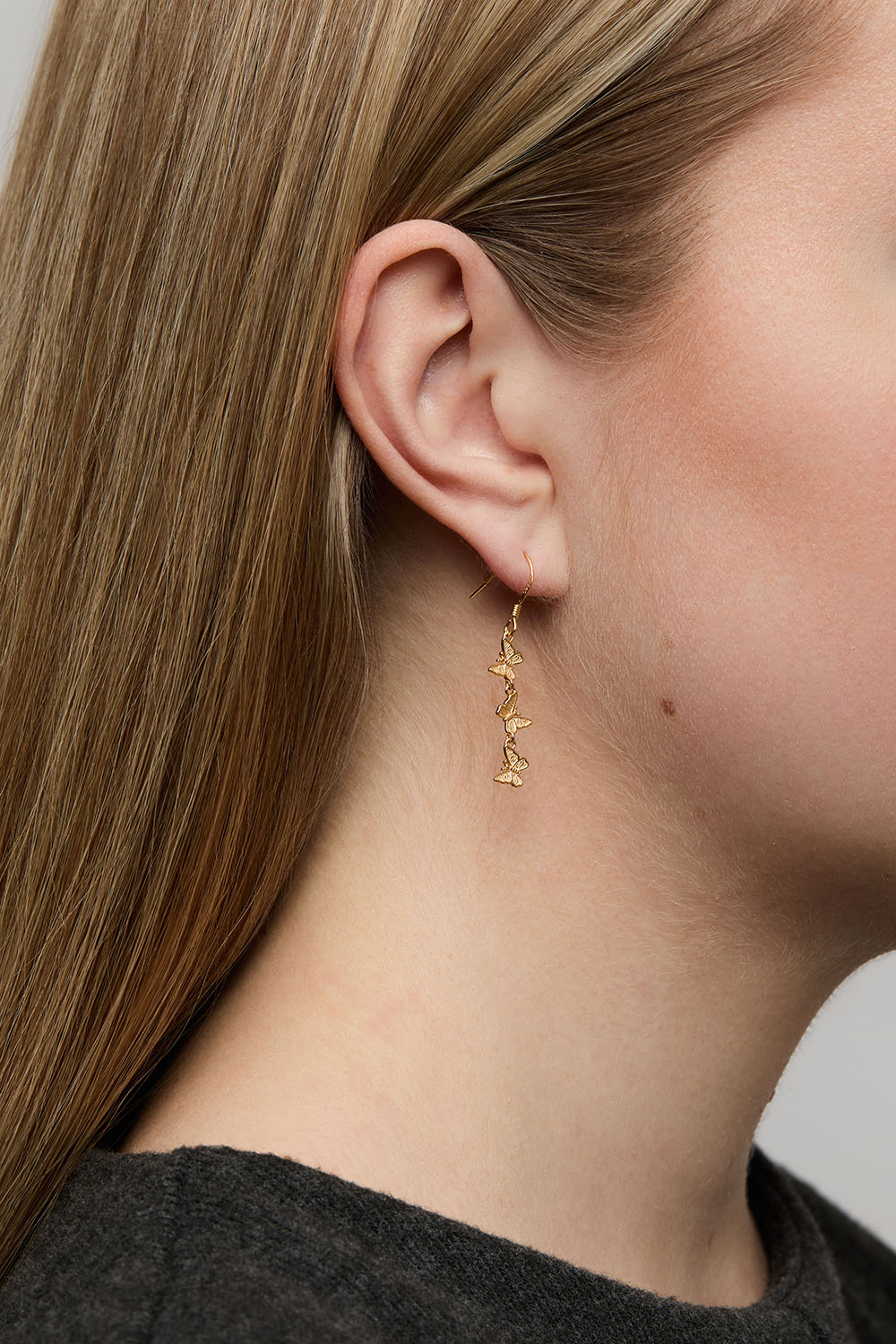 Lange øreringe i 18 karat forgyldt sterlingsølv med tre hængende sommerfugle.