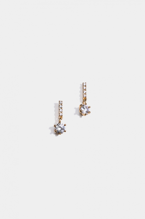 Øreringe i 18 karat forgyldt sterlingsølv med stave og runde kubisk zirkonia-vedhæng