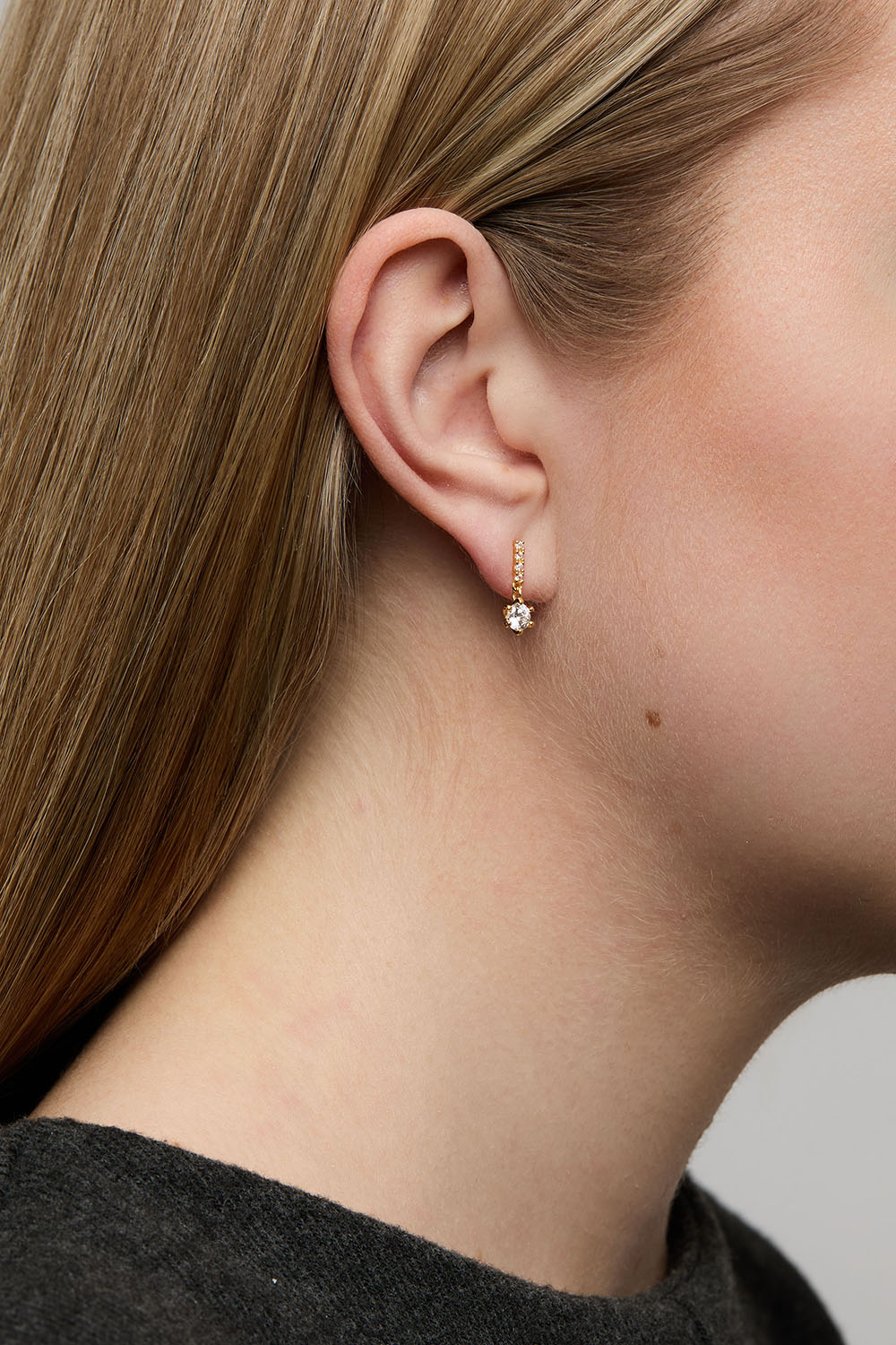 Øreringe i 18 karat forgyldt sterlingsølv med stave og et rundt vedhæng, dekoreret med kubisk zirkonia-sten.