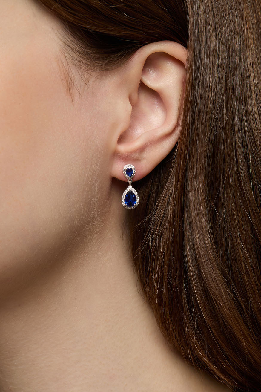 Øreringe i 18k ægte sølv med blå dråbeformet kubisk zirkonia
