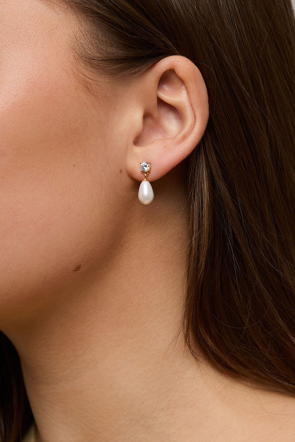 Øreringe i 18k guldpletteret ægte sølv med kubisk zirkonia og hængende perle