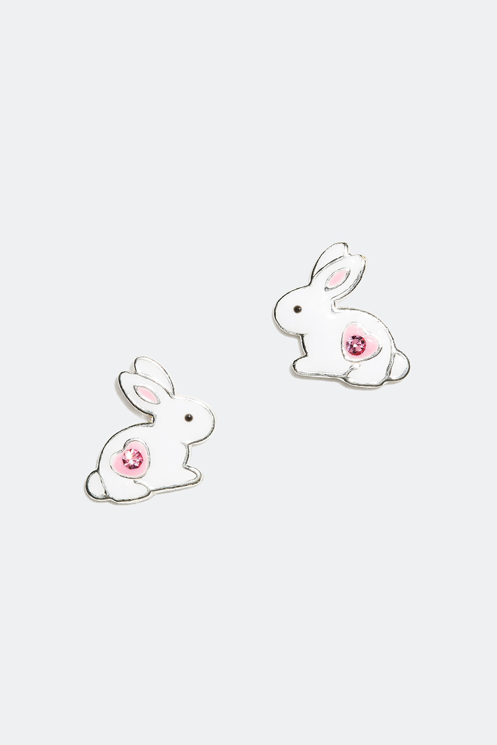 Ørestikker i ægte sølv med motiv med hvid kanin og rosa hjerte.
