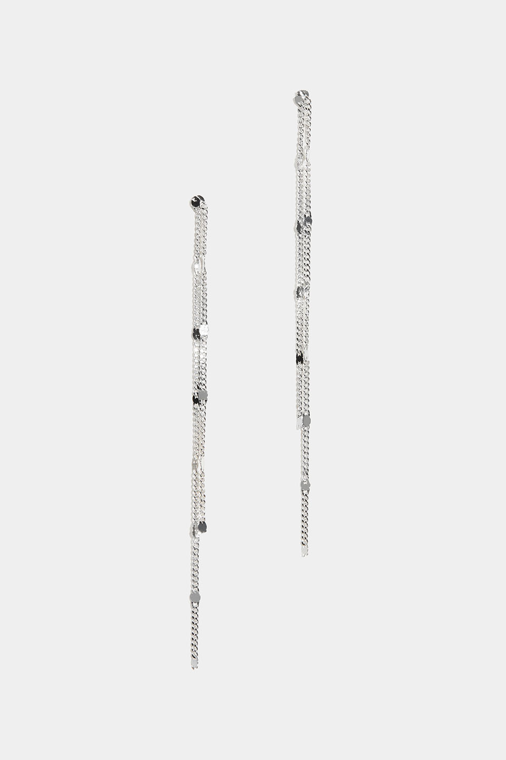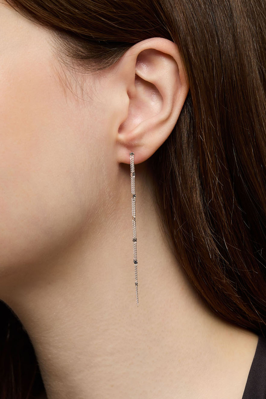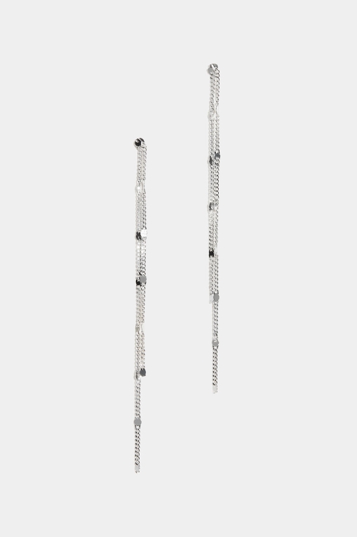 Øreringe i ægte sølv med to tynde, hængende kæder i forskellige længder.