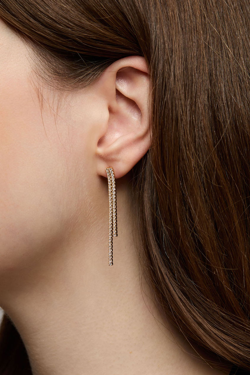 Øreringe i ægte sølv med to led i forskellige længder dekoreret med sten i kubisk zirkonia.