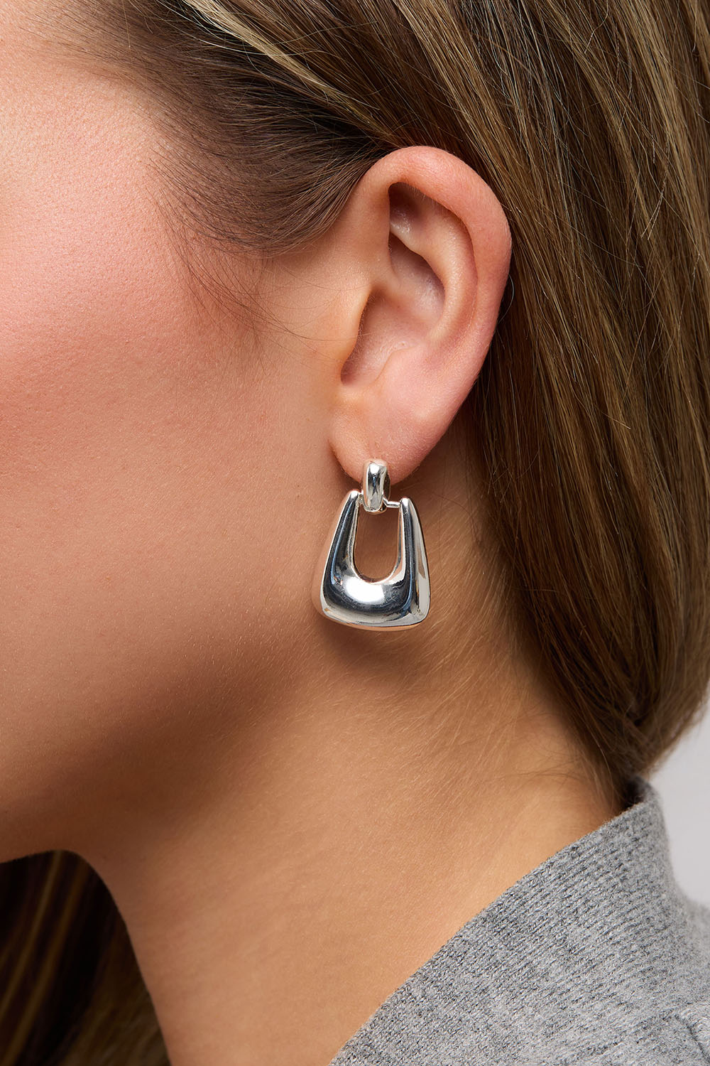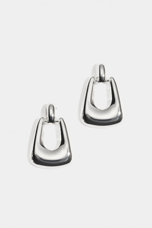 Øreringe med hængende dekoration i blankt sølvfarvet metal.