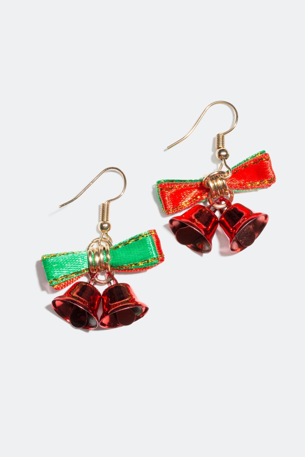 Øreringe med juleklokker - Øreringe i metal dekoreret med to juleklokker med en sløjfe for oven.
