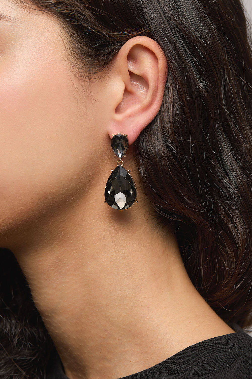 Øreringe med mørkegrå dråbeformede glassten i gruppen Smykker / Øreringe / Similiøreringe hos Glitter (253010390202)