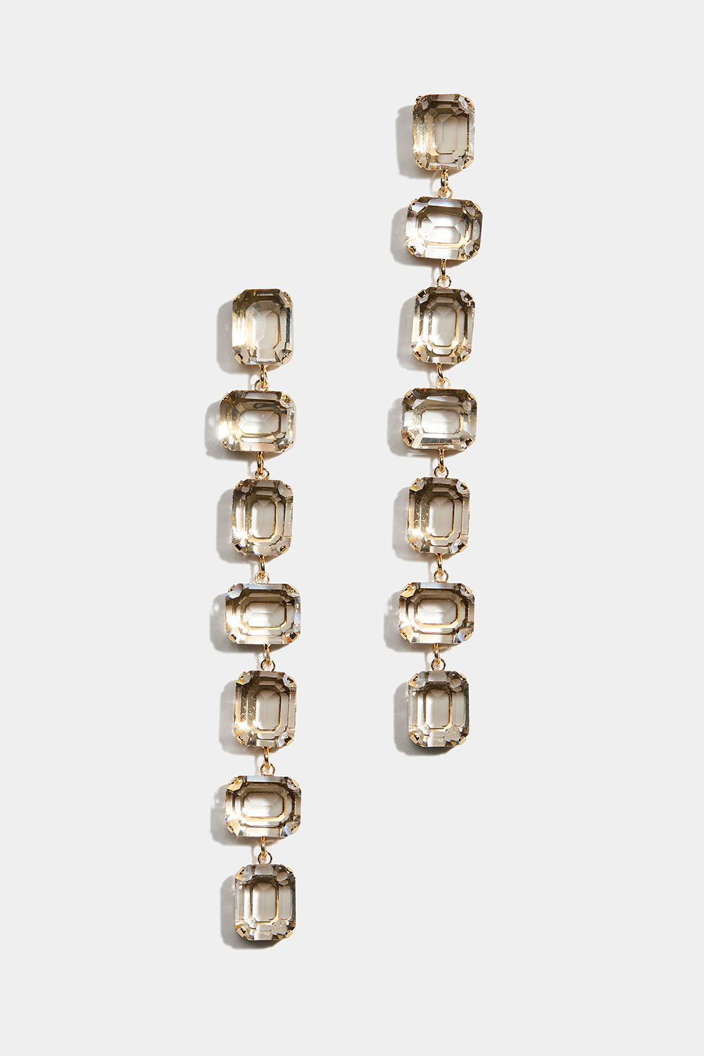 Lange øreringe med rektangulære glassten i hvidt.