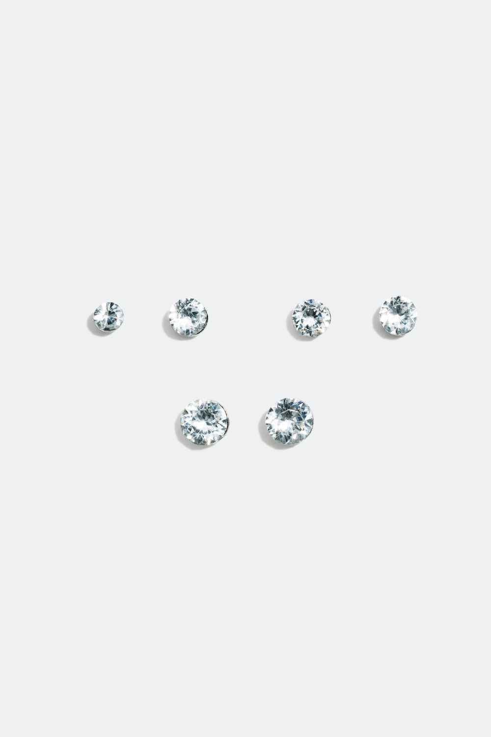Øreringe med runde glassten, 3 par - Tre par gnistrende øreringe i forskellige størrelser, et par for hver tilfælde. De store øreringe passer udmærket til fest og kombineres enkelt med armbånd og halskæde.