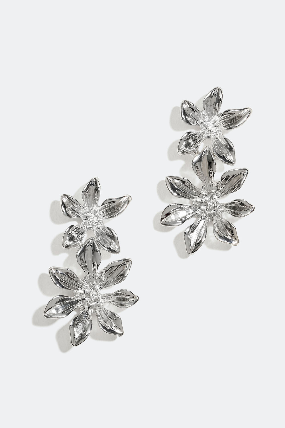 Øreringe designet med to dekorative blomster i forskellige størrelser. Perfekt til alle årstidens arrangementer.