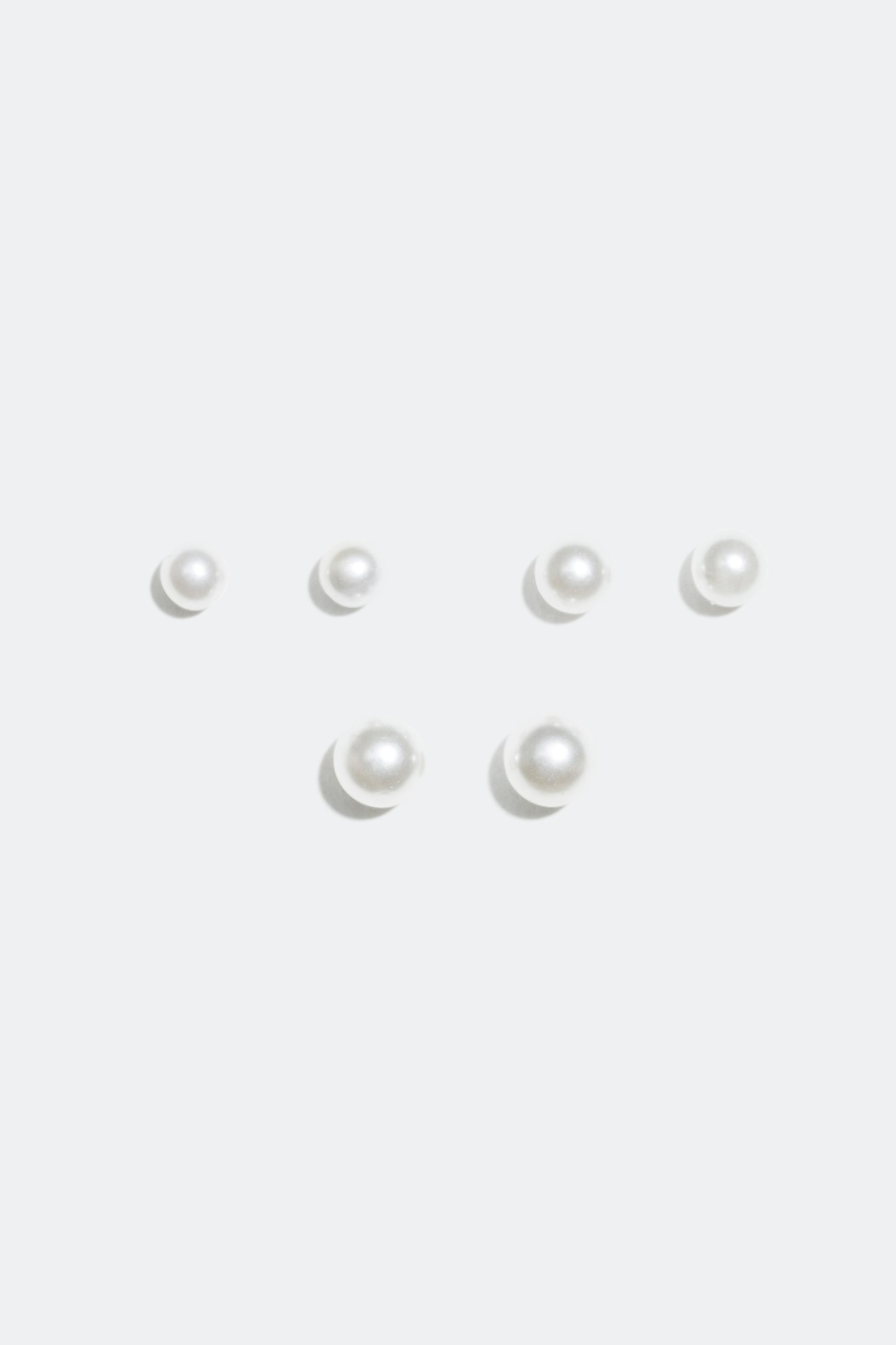 Øreringe mix plastperler, 3stk pr pakke - Tre par metal øreringe med plastikperler i forskellige størrelser.