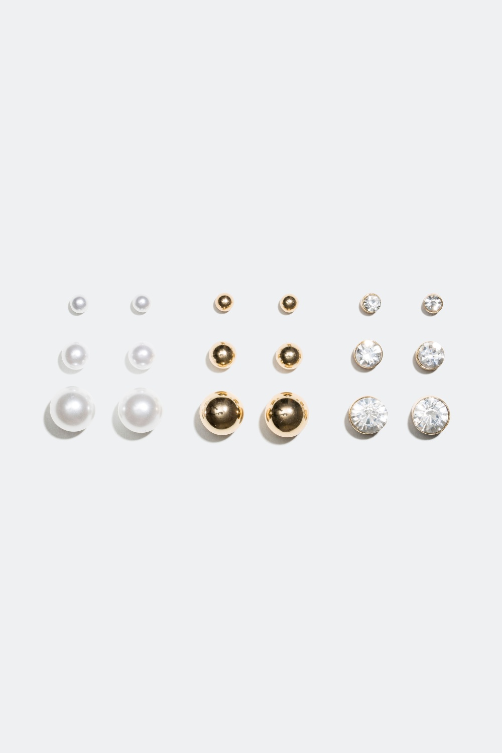 Øreringe runde mix, 9-par - Ni par øreringe i forskellige farver og størrelser. Tre par med plastperler, tre par med metalperler og tre par med glassten i forskellige størrelser.