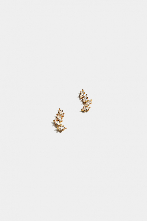 Ørestikker i 18k guldpletteret ægte sølv med buet form og kubisk zirkonia