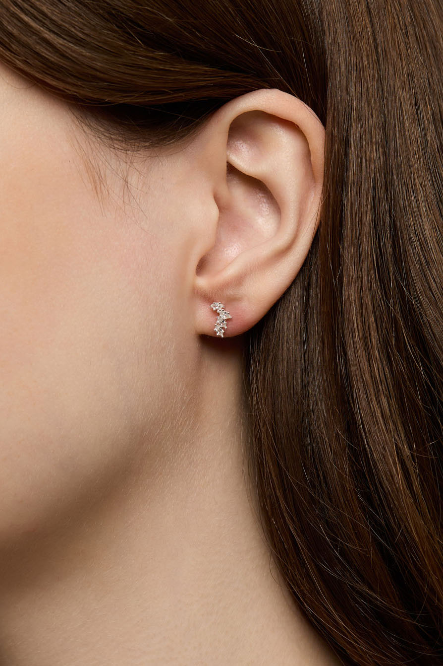 Ørestikker i 18k guldpletteret ægte sølv med fire dråbeformede sten i kubisk zirkonia i buet form.