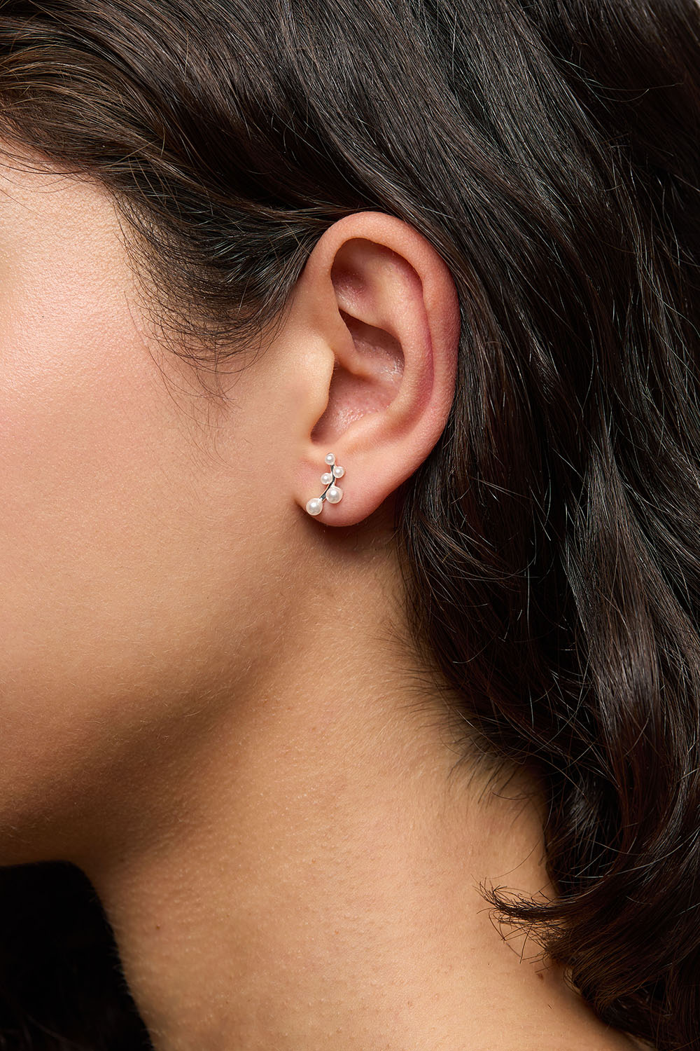 Ørestikker i ægte sølv med små hvide perler i forskellige størrelser.