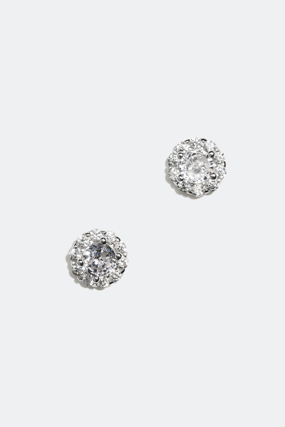 Små runde ørestikker i ægte sølv prydet med en større Cubic Zirconia sten og små Cubic Zirconia sten placeret rundt omkring. Et par enkle, men skinnende øreringe, der egner sig til flere forskellige lejligheder.
