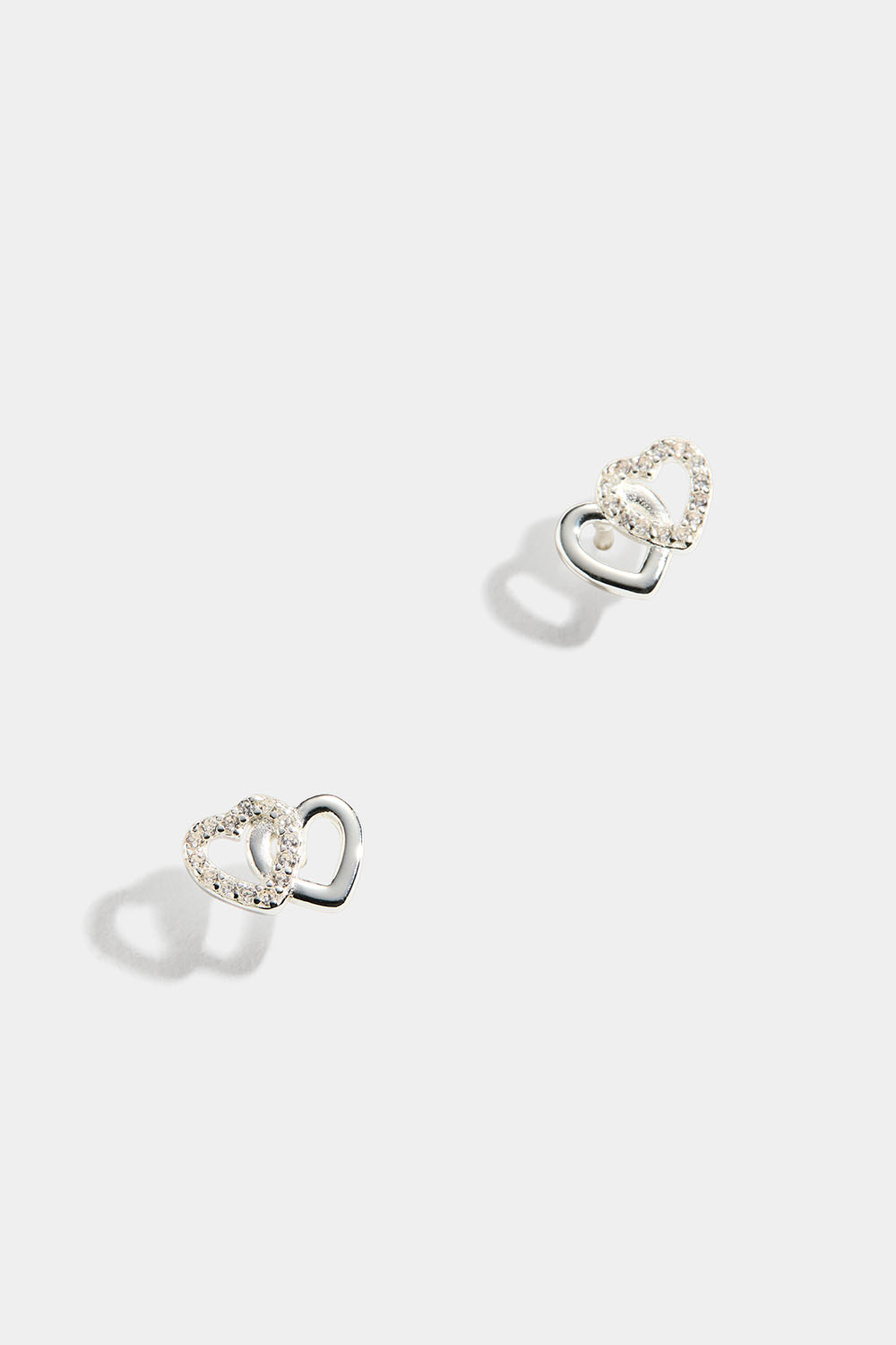 Ørestikker i ægte sølv med to sammensatte hjertekonturer, hvoraf den ene er dekoreret med kubisk zirkonia-sten.