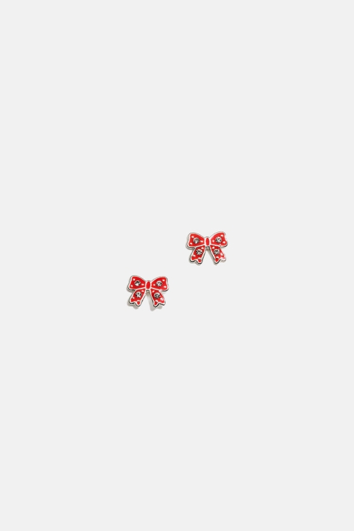 Små ørestikker i ægte sølv med røde sløjfer dekoreret med hvide sten.