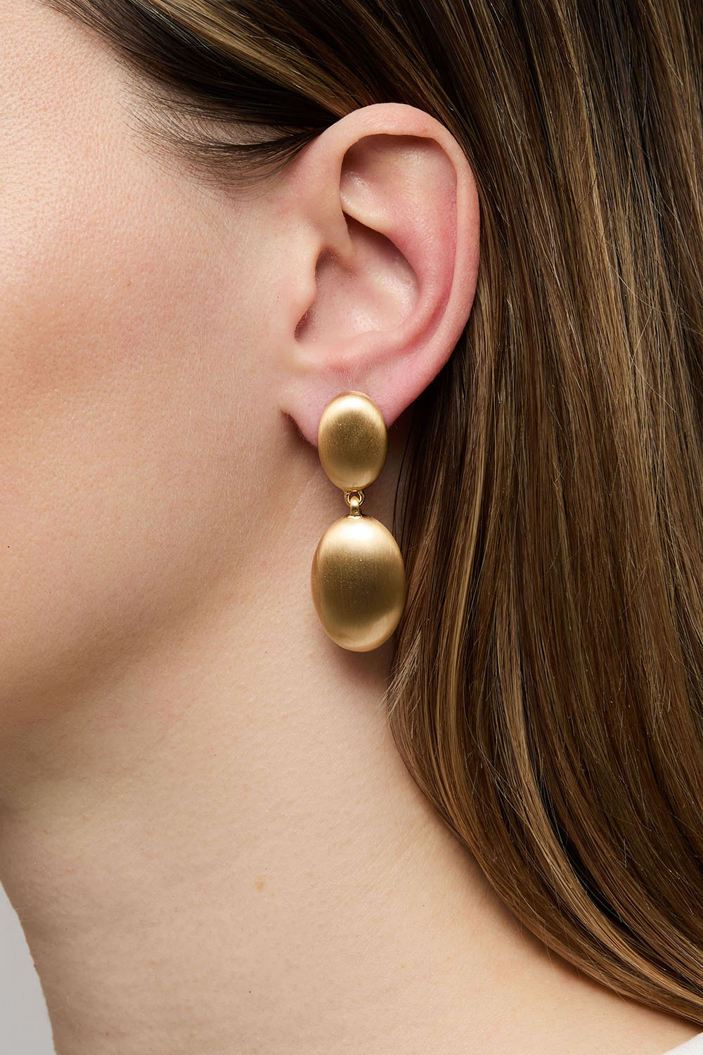 Klipsøreringe i guldfarvet metal med et ovalt design med en mat og børstet overflade. Et par stilrene øreringe, som passer perfekt til dig, der ikke har hul i ørerne.