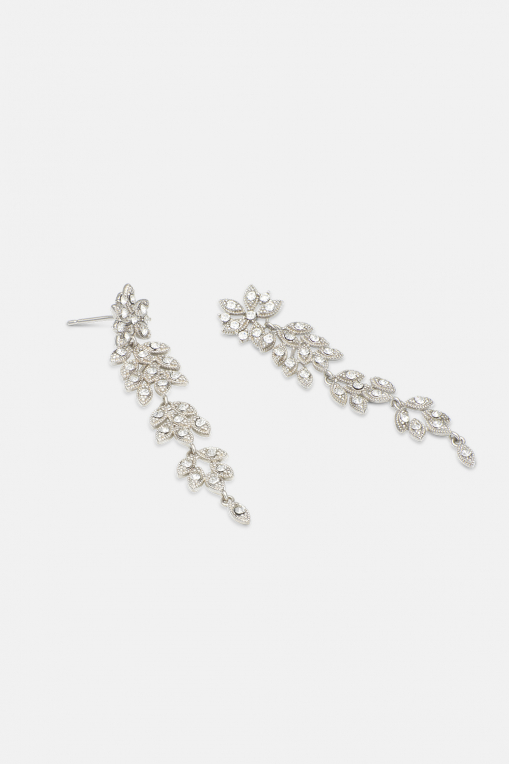 I den lille version af vores Laurel kan du udfolde din fulde overdådighed med disse smukke, lange øreringe. Disse små, diamantklare krystaller er placeret på en næsten tredimensionel måde og er udsmykket på en måde, der helt sikkert vil imponere.