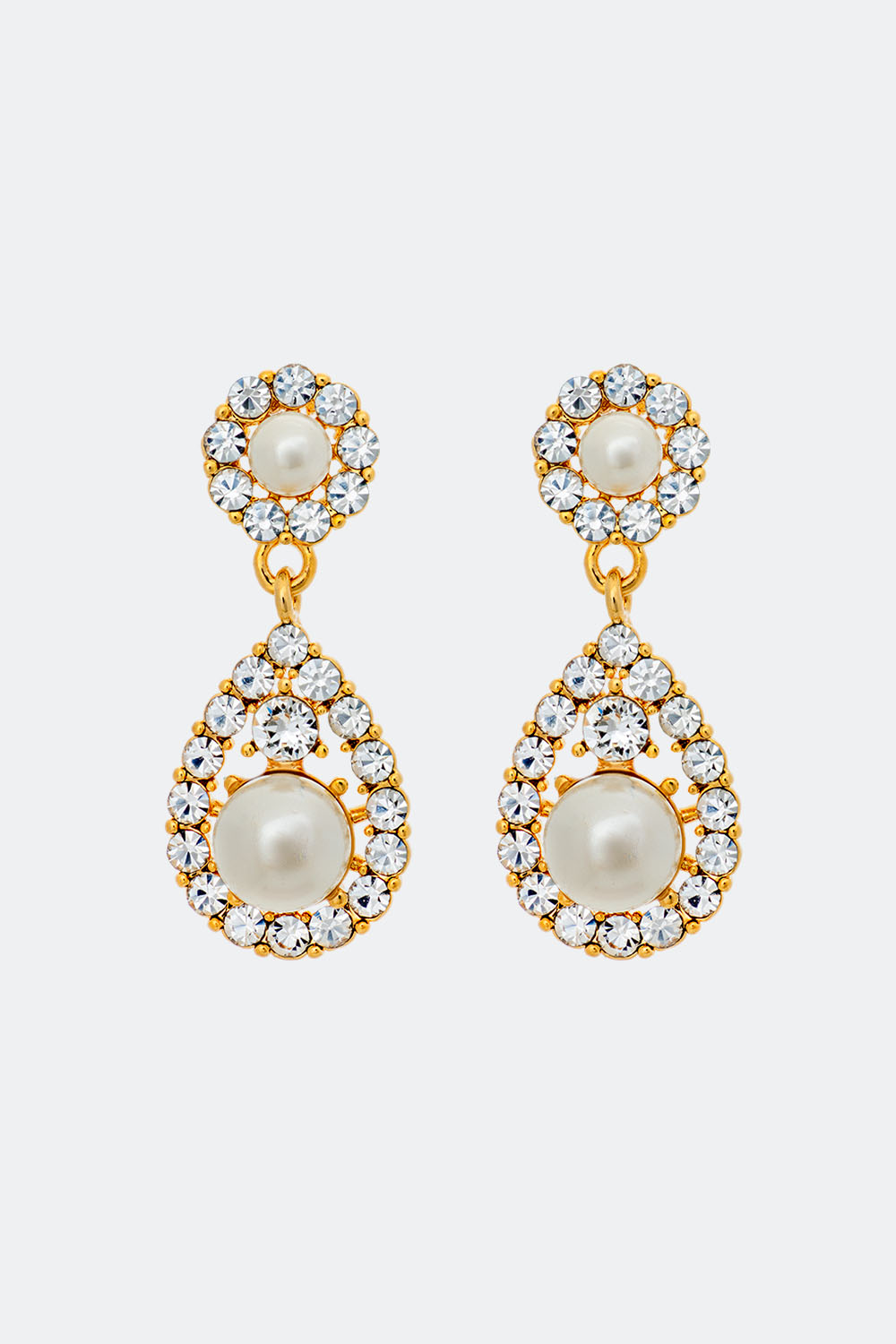 Sofia er en mindre version af sin forgænger, og det udsøgte design gør designet virkelig alsidigt og velegnet til enhver stil og lejlighed. Dette smykke har en fantastisk glans med en elegant perle indrammet af mindre klare krystaller på den større dråbe samt den runde base. En øjeblikkelig favorit. Indfattet i guld. Supplér dit look med matchende elementer fra vores Sofia-kollektion.