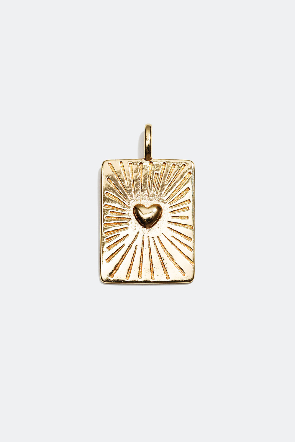 Vedhæng i form af en rektangulær skive med hjertemotiv og mønstret overflade. Et dekorativt vedhæng i ægte sølv, som er forgyldt med 18 kt. guld. Match med en halskæde, og kombiner gerne flere forskellige vedhæng, såsom stjernetegn eller bogstaver, for at opnå et mere personlig look.