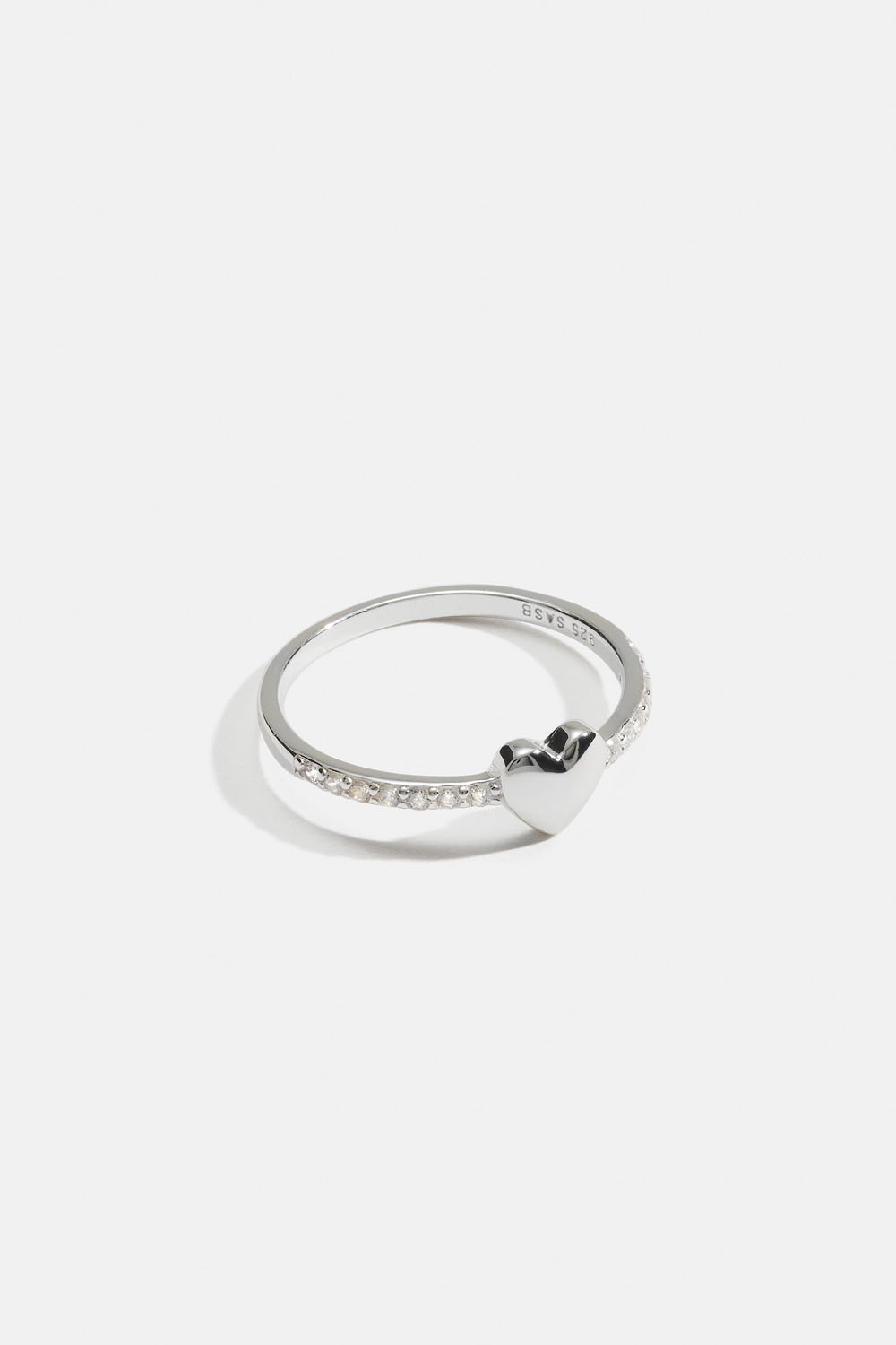 Ring i ægte sølv dekoreret med et hjerte og en række kubisk zirkonia-sten