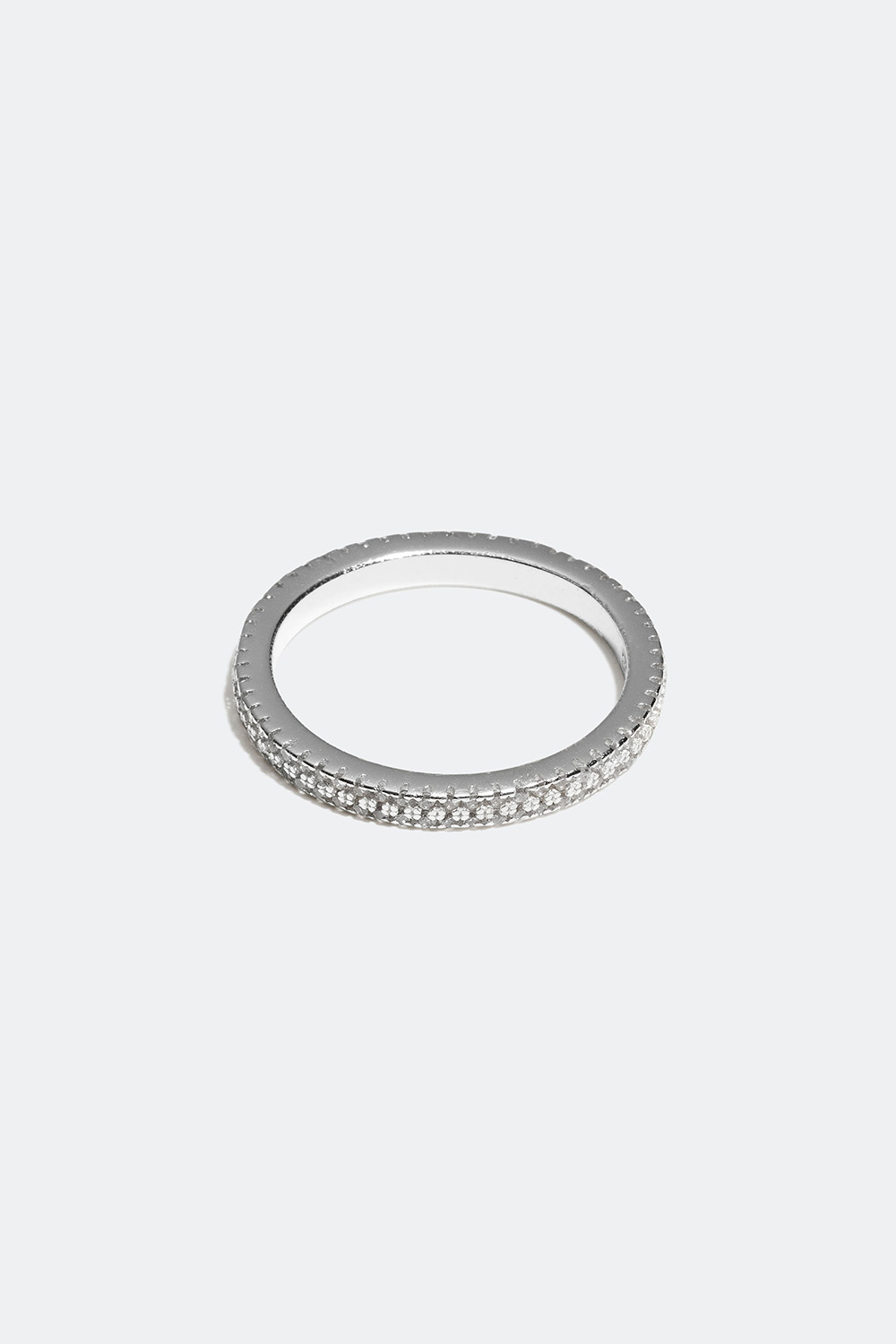 Ring i ægte sølv med to rækker små hvide Cubic Zirconia sten, der sidder rundt om hele ringen. En stilfuld ring med et elegant design, der tilføjer glimmer til dit look og er velegnet til både fest og hverdag. Kombineres og stables gerne med andre ringe for et komplet look.