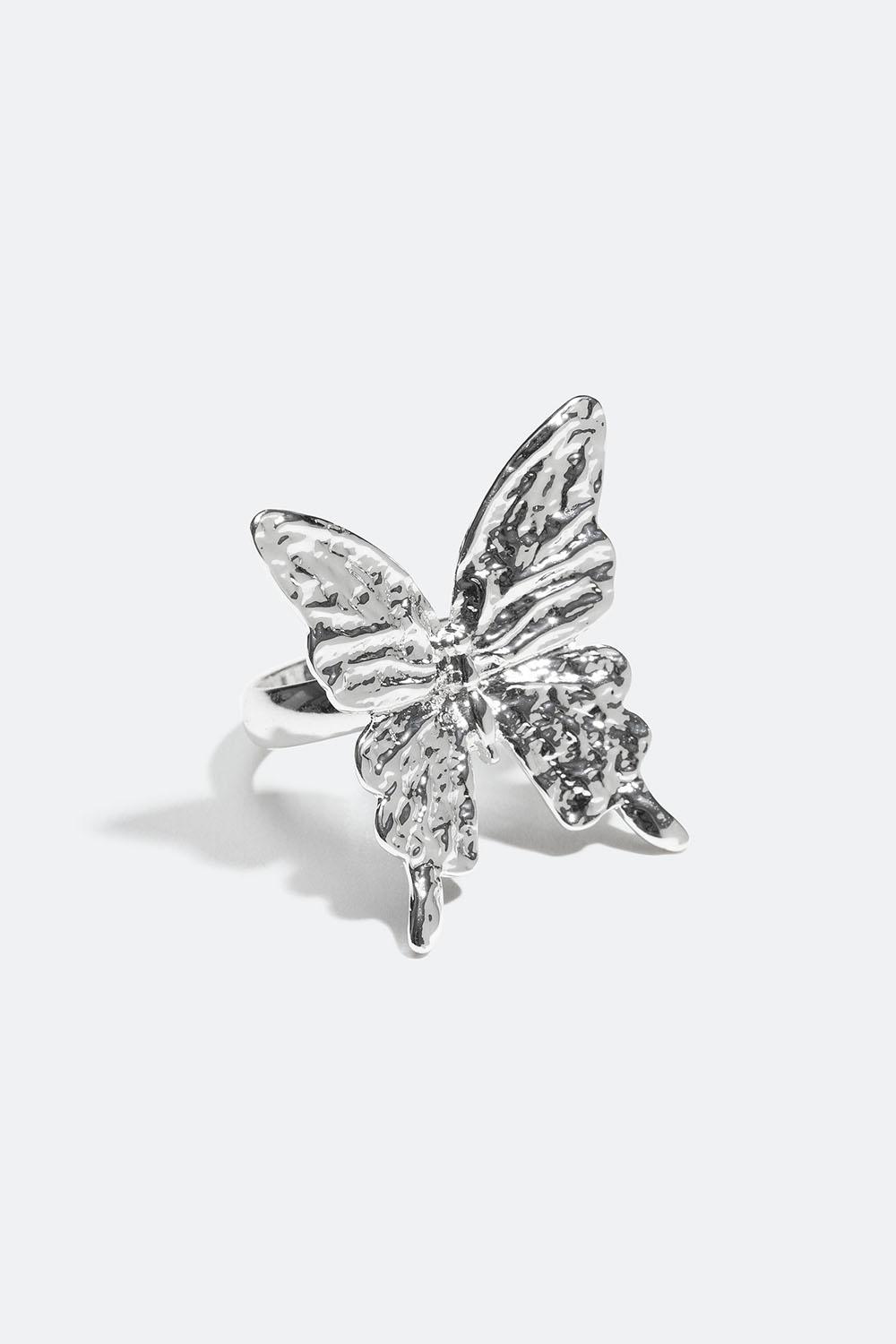 Stilfuld ring med stor sommerfugl i hamret design. En dekorativ ring, der tilføjer lidt ekstra til dit look.