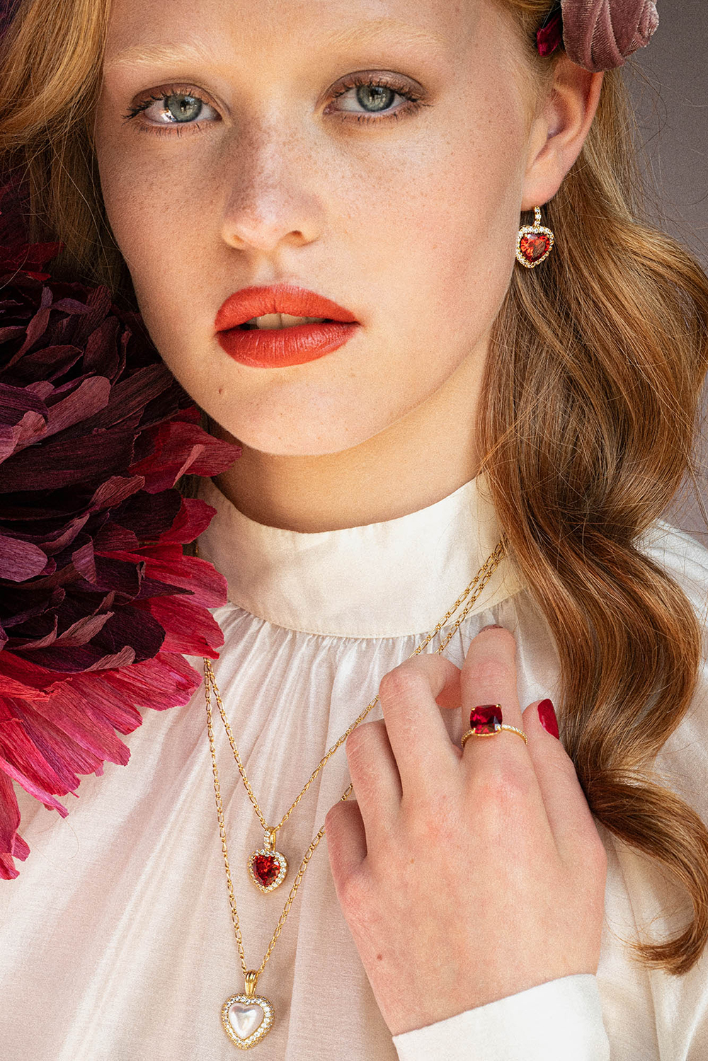 Med en dyb granat i midten og funklende klare detaljer giver Rose-halskæden en charmerende farvepragt og et raffineret glimt.