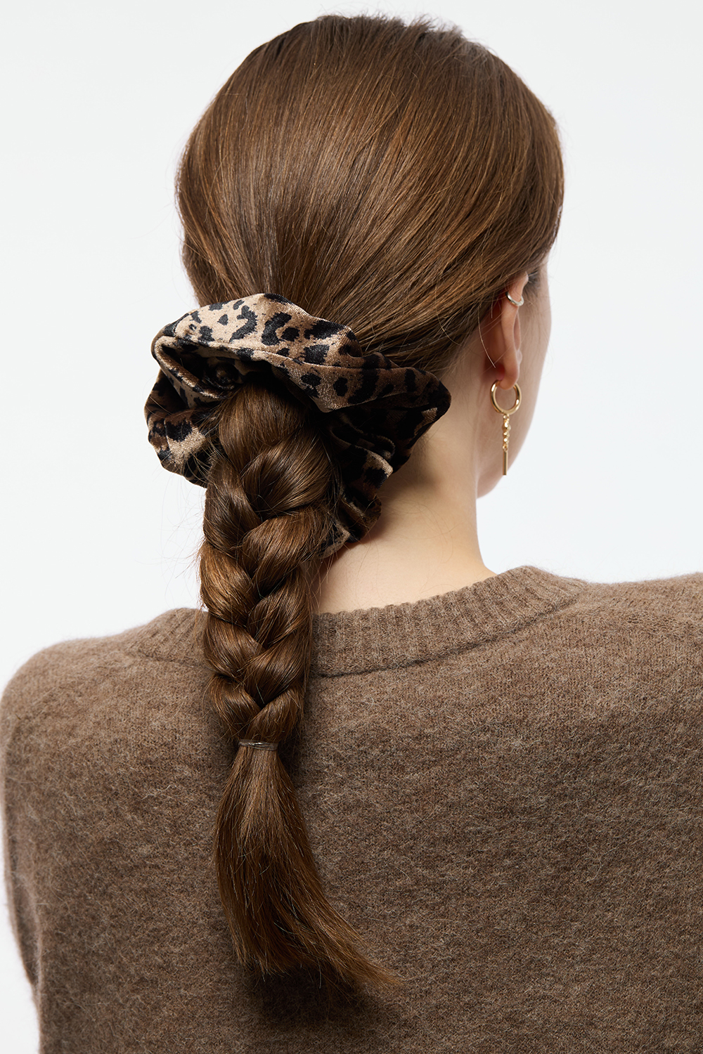 Scrunchie i fløjl med leopardmønster