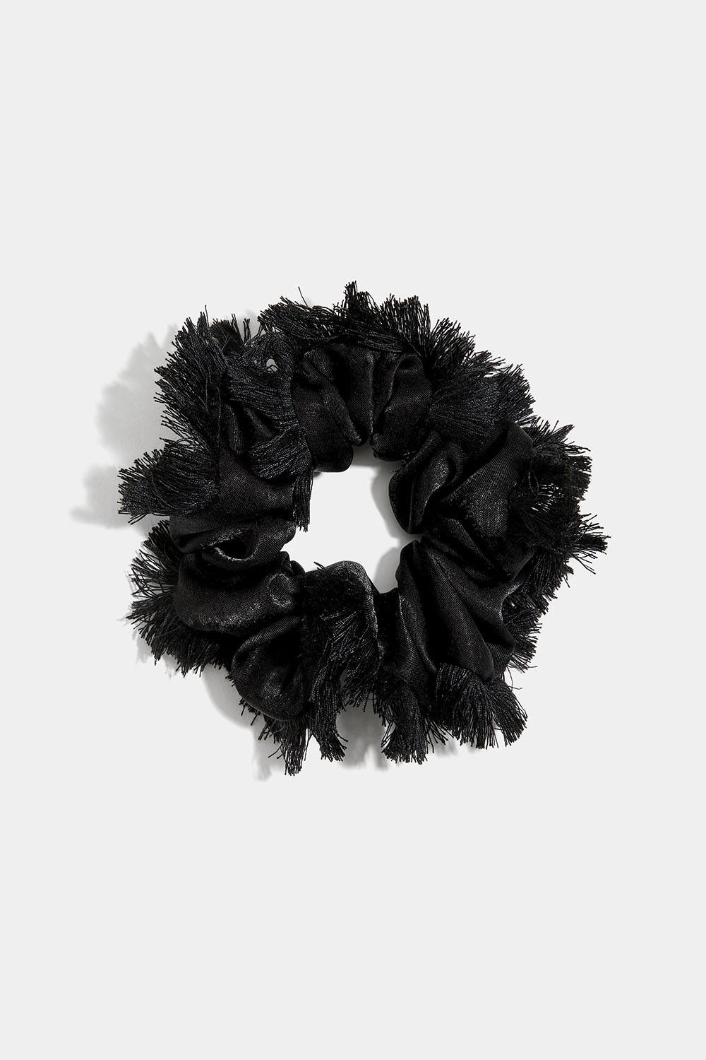 Silkeagtig scrunchie med flæsekant, sort.