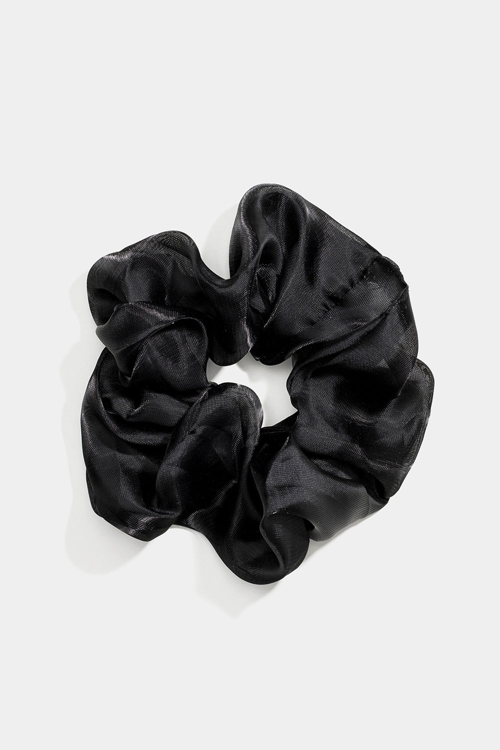 Scrunchie med glansfuldt stof - Elastisk hårbånd dekoreret med glansfuldt, sort stof