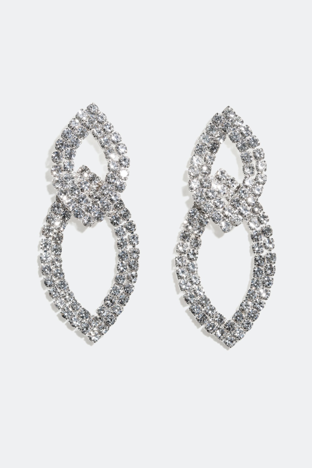 Similiøreringe med to dekorationer - Disse stilrene øreringe består af en mindre samt en større dekoration, som er sat samme. Øreringene er udsmykket med krystalfarvede glassten, hvilket giver en flot skinnende effekt.