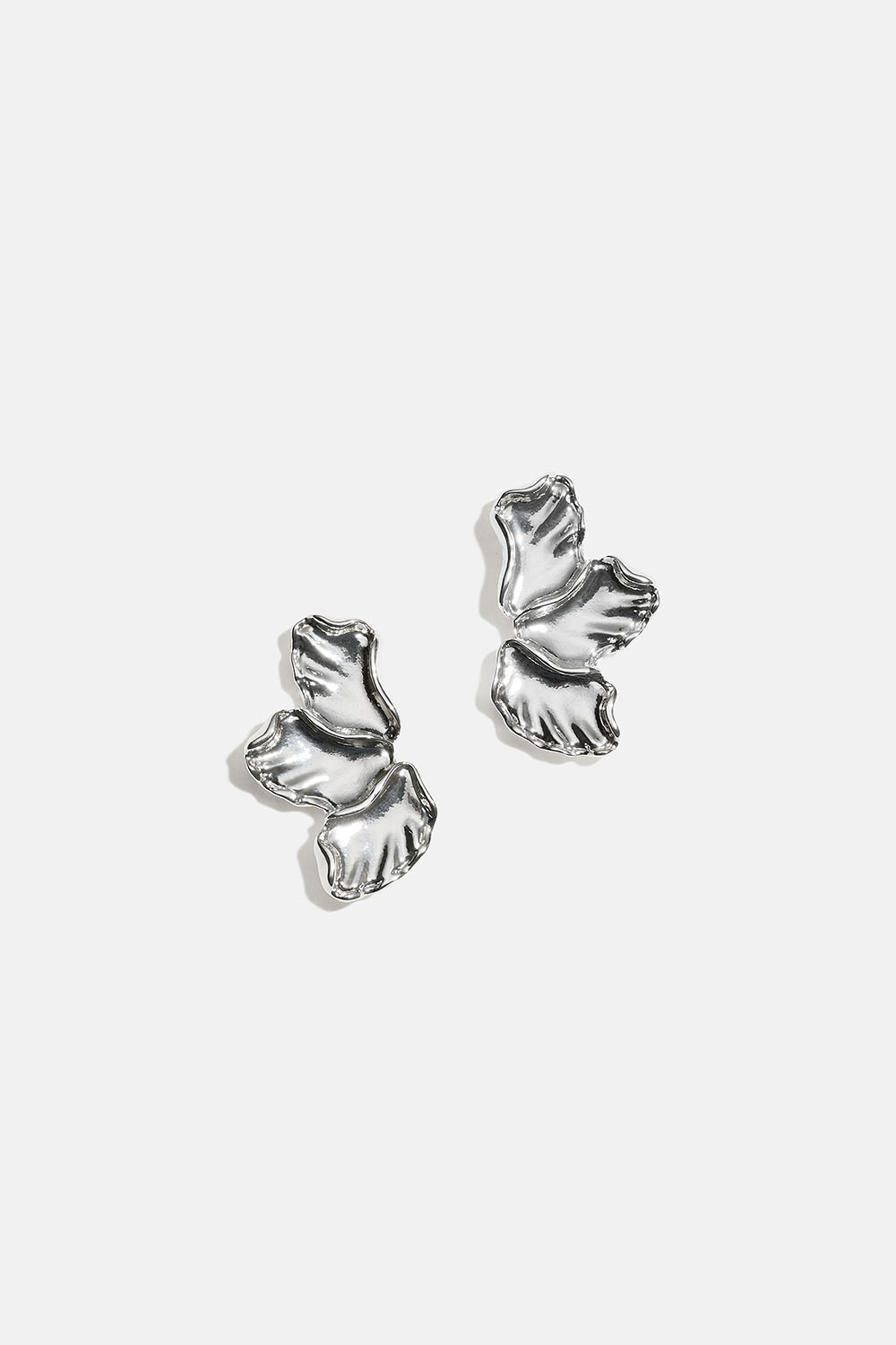 Små kronbladformede metaløreringe med foldede kanter.