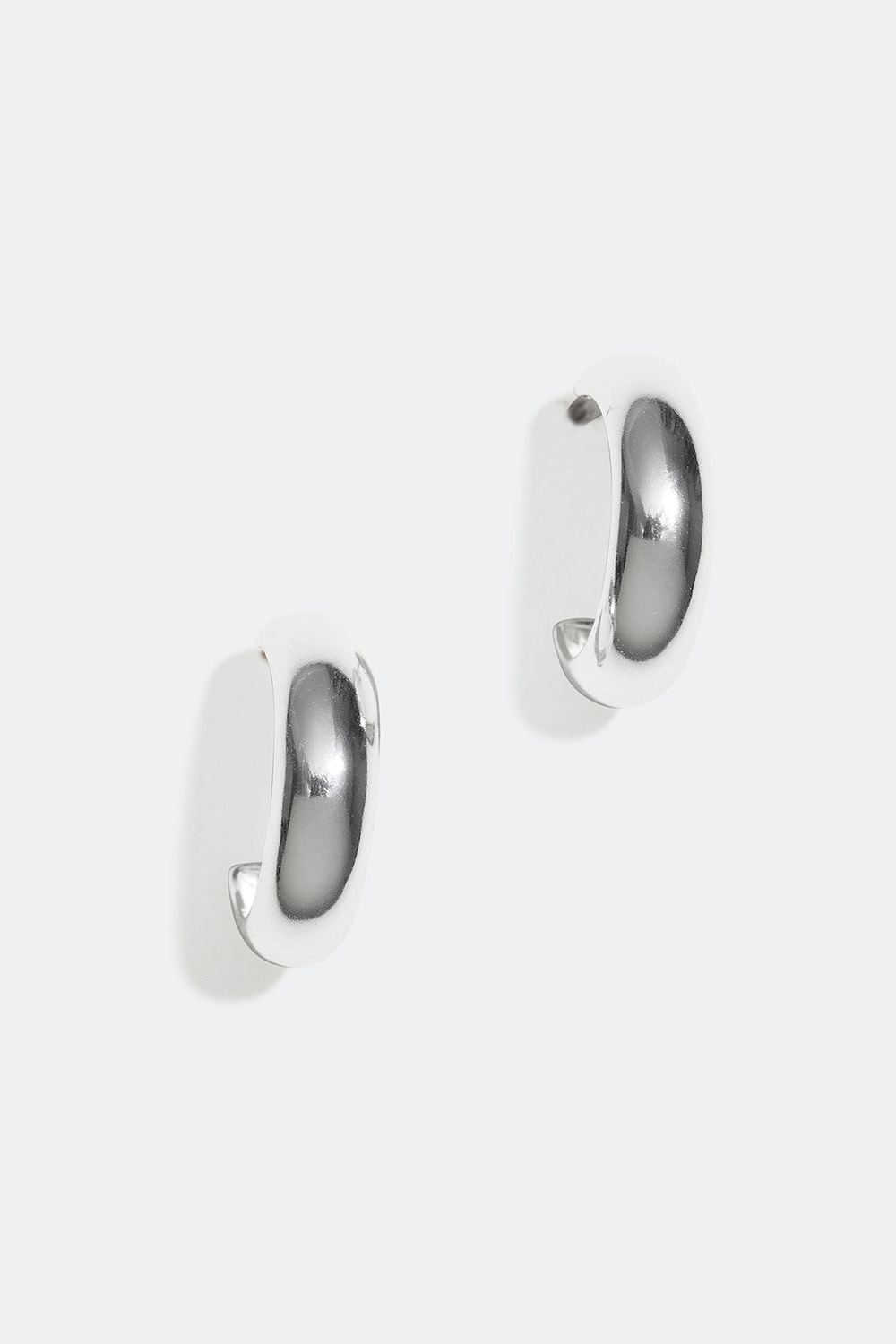 Små stilrene hoops i ægte sølv med et lidt bredere design. Et par perfekte hverdagsøreringe, der nemt kan matches til alle dine outfits og desuden er fine at kombinere med andre øreringe og smykker.