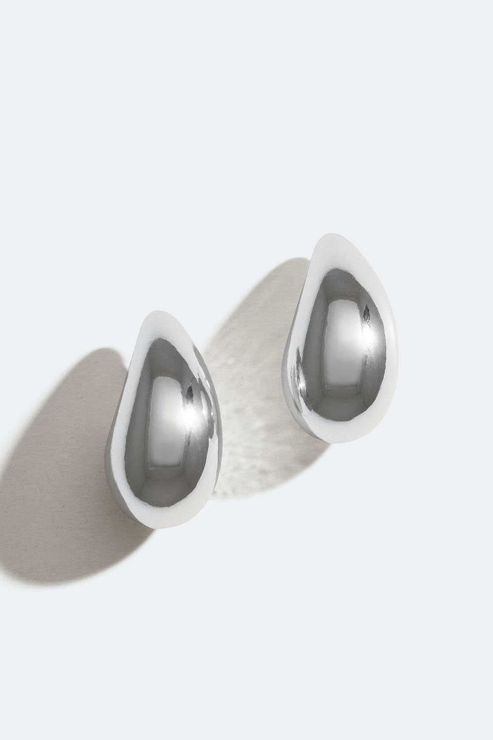 Små dråbeformede øreringe i blankt metal. Et par diskrete øreringe i et stilrent design, der passer til enhver lejlighed.