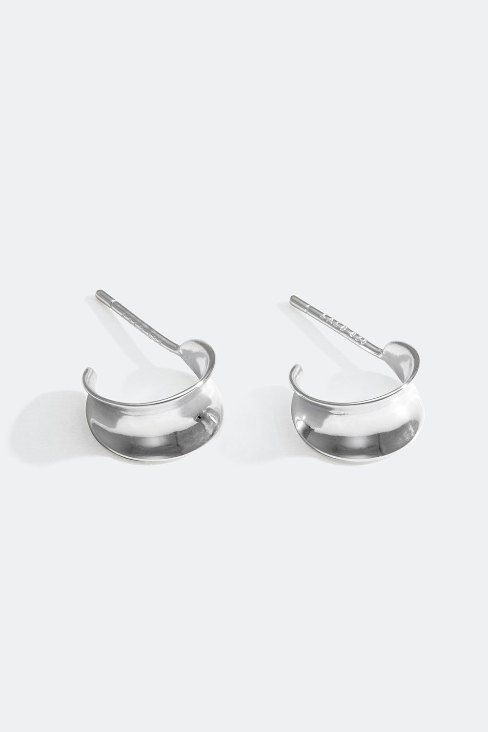 Små brede hoops i ægte sølv med fladt og kurvet design.